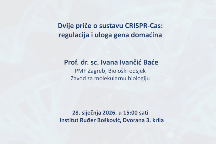 Poziv na zajednički kolokvij Bakteriološke sekcije i Hrvatskog genetičkog društva, na kojem će prof. dr. sc. Ivana Ivančić Baće (PMF Zagreb) održati predavanje pod naslovom "Dvije priče o sustavu CRISPR-Cas: regulacija i uloga gena domaćina".